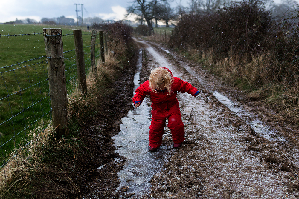 But last Thu (March 1) we had the best day! We woke up and rushed to look out the window and saw everything covered in a blanket of snow, Nixie could not have been more excited! She wanted to go out straight away but I somehow managed to get her to eat some breakfast and then we were off! I've never seen her so excited to put on her snowsuit, her “special outfit” as she calls it. We decided to just head over to Buckland Rings, a bit of woods near where we live. I love the path we take to get there, it's right next to a field of horses and we pass a farm on the way, making you really feel like you are smack in the middle of real country life, which I guess we are!