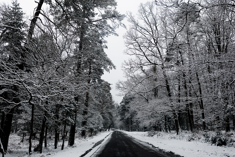 We decided to head over to Blackwater, one of my other favourite bits of forest. And on our way looking out the car window at the beautiful scenes surrounding us, I felt so full of emotion, even my eyes started to water, everything felt incredibly magical and infused with such peace that it stirred my soul on the deepest level. And as we got onto Rhinefield Drive the views were so mesmerizing all covered in white, even Nixie Sat in absolute silence looking out the window in awe.