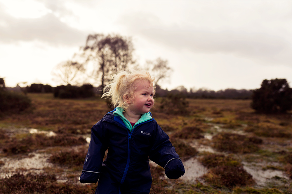 We headed down the main path that cuts diagonally across the heathland which was mostly covered in giant puddles. We were surrounded by so many beautiful horses, and when Nixie first laid her eyes on them she had to make sure Daddy saw them too. I'll never grow tired of this sight, I just love being in the presence of horses. But what I hadn't anticipated was the crazy wind!! Because we were in a very exposed area it felt like we were in the eye of a tornado OK so that’s a bit of an exaggeration but it did feel like it could blow us over at times! I had kind of wanted to head to the woods where we'd be more sheltered but Nixie's favourite thing in the whole wide world at the moment when we're outdoors is to play in puddles and this was the perfect place for that even with the crazy wind...I had asked her if she wanted to get out and walk or if I should get us somewhere where there was less wind and to that she responded, “No, not walk! Want to run, together!!” So with that answer out she came and immediately as her little feet touched the earth off she went running in the direction of the path jumping and splashing in the never ending line of puddles. But the path bored her and she decided to head off the path to our right and here the land was wet, soggy and incredibly waterlogged. It had a lot of the same kind of mounds you find at balmers lawn and we spent the next 20 minutes jumping from one to the next as fast as we could.
