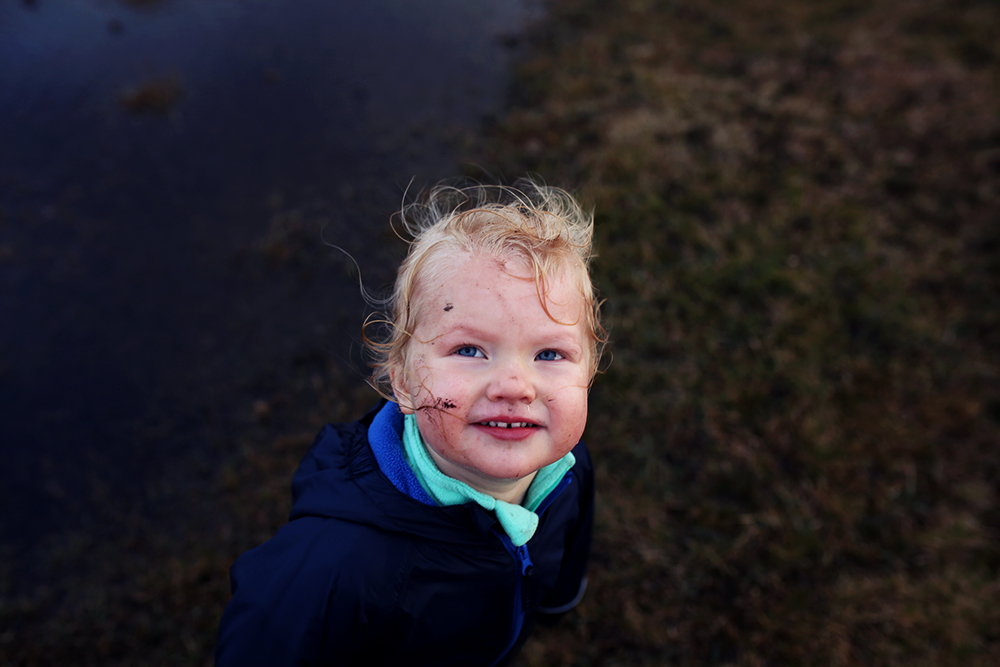 After a while she started to head back into the direction of the path again and if I'm honest I was very pleased because I was beginning to worry that her outfit wouldn't be able to keep her dry for much longer and with the intense wind we were experiencing i was concerned about her getting too cold but there was a big stream stopping us from getting to where we needed to be. We held hands walking along the streams edge hoping to find a place where we could cross. Eventually we found this one spot that seemed possible and as I put my foot in to see how deep it was I slipped and my foot just went down into the water all the way to my knee filling my boot with water and in the exact same moment Nixie tried to step in as well and fell too and somehow bumped the side of her face which made her cry...there's nothing I hate more than seeing her get hurt..but I managed to pick her up straight away and couldn't see any marks or anything, I think she got more startled than anything, after seeing that she was alright I could finally take my boot off and dump all the water out.