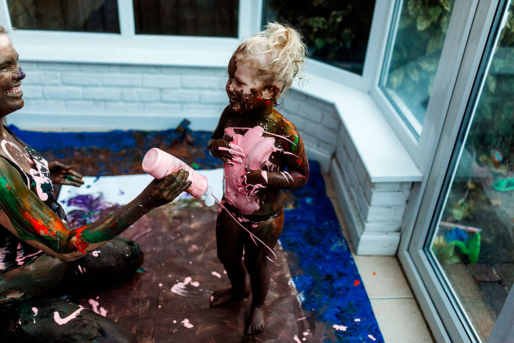 All week you had been wanting to do messy paint with me but I told you we had to wait until the weekend when daddy was home because now that I'm 29.5 weeks pregnant it's kind of a two person job to help get you upstairs (without getting paint everywhere) afterwards to get us cleaned. So we went home to fulfil this wish of yours. And I must say I absolutely love getting all covered in paint with you!! It was one of our funnest sessions to date, you were so happy and were loving every second of it, and having daddy help cover us in paint made it a lot easier. You especially loved painting my face which if I'm honest was not my favourite bit but hey it was worth it to her your giddy excitement and endless squeals of laughter. We even all made it upstairs without making a mess! Even washing the paint off of us was such a sweet experience, you and I sat in the tub taking turns to use the shower head to help each other rinse the paint off. We ended up having a really cosy and relaxing bath together, it was bliss.