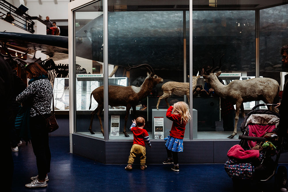 We had hoped to leave the house by 7 but made it into the car by 7:30 so not too bad to make our way to London. This time we finally made a family CD and the look on your (Nixie) sweet little face when all your favourite songs came on was the most beautiful thing ever! Your current favorites are: Burn one down by Ben Harper, both the songs from Spirit: Riding Free, volcano girl by Veruca Salt, Canonball by Breeders and lots of old school reggae songs. We missed the Costa drive through so we stopped at the next reststop for coffees. It took us about two hours to arrive, daddy had already booked parking at at a hotel in kensington which made it super easy and then we walked for about 20 min or so to the natural history museum. Forrest you fell asleep right as we arrived and slept through our whole tour of the dinosaurs which you, Nixie, really loved. Ever since the last time we were there last year you've been wanting to return and it felt so much more special that this time all of us could go. You were still afraid of the anamatronic T-Rex. I could see your fear as we began heading in it's direction you cuddled up to me and put your hand to your mouth in pure anxiousness, you wouldn't even get too close and wanted to leave straight away. Your favourite dinosaur we saw was the iguanadon. Once we finished the dinosaur section we all sat on a bench and had our picnic lunch. Afterwards we headed to the mammal section which we didn't get a chance to see last time and this was your favourite and Forrest you finally woke up during this part and you loved seeing all the animals. You were a bit unsure of the hyena but absolutely loved looking at the lion. You even got to run around a bit in the whale section and I loved seeing you explore your surroundings, you were having so much fun, I even got a little emotional seeing the two of you looking at things together. You, Nixie, especially loved the sea animal section and they even had these scales that you could go on to see how much you weigh in comparison to a whale and we learned that a blue whale weighs 5731 times as much as you do! Eventually it was time to leave and we went back through the anatomy section where you (Forrest) and I found a bench to sit on so you could nurse and Nixie and daddy explored for a bit and then we headed back to our car so that we could make our way to auntie Helen. It felt so strange driving around central London past Buckingham Palace, Trafalgar Square the Southbank, The Shard because when we lived here we would never drive there! But you really enjoyed the tour and always get so excited when you see the London Eye.
